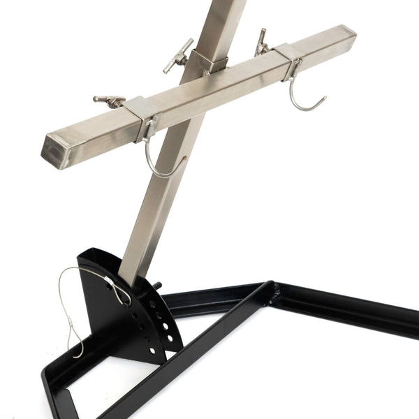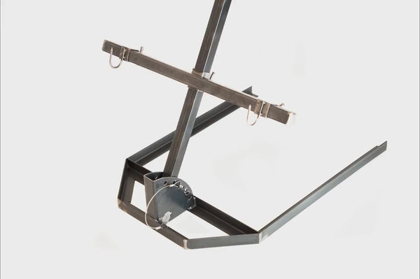 Each cross o estaca is built for fire precision: adjustable, balanced, and forged in Argentina. Our heavy duty cross grill is ideal for whole animals like a lamb or pig, while the Iron Cross Grill is better suited for costillares, vacío, or smaller cuts. Both offer the same level of control and authenticity, scaled to fit your fire setup.