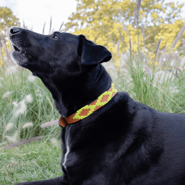 Collar de perro de cuero bordado (verde manzana)