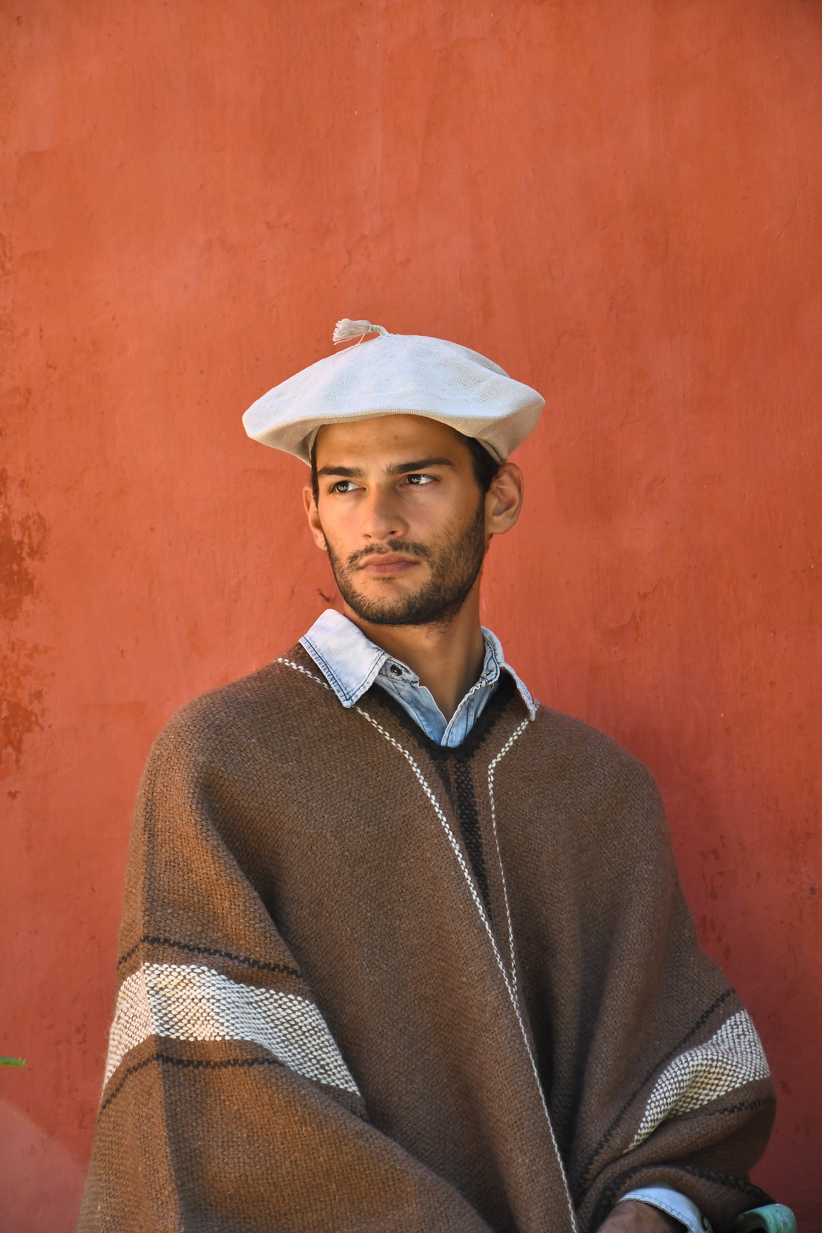 dyed by hand with natural elements in Argentina. Every poncho is one of a kind and
